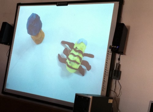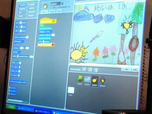 E a história da abelhinha sem riscas numa das salas do Pré-escolar... Da plasticina e dos desenhos deles… até à ferramenta Scratch. Comparar tamanhos, sequenciar, explicar por onde anda a abelhinha... “agora está por baixo do sol”, “agora está em cima da árvore”, “agora está ao lado da mãe”...
