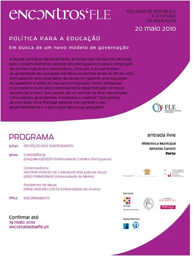 agenda 18 Mai, 2010 Encontro FLE_Política para a Educação (Ver mais) Tags:agenda link do post favorito