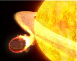 A Wasp-12, uma estrela semelhante ao nosso sol e que se encontra a 600 anos-luz da Terra, está a devorar o planeta que está mais próximo de si. O processo, que só se vai finalizar daqui a dez milhões de anos, foi registado pelo Hubble. (Ciência Hoje)